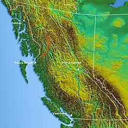 - ↑ Elevation derived from ASTER Global Digital Elevation Model, using GeoLocator, and BCGNIS coordinates.