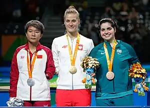 At the 2016 Summer Olympics she competed in the women's team event and later won her fourth consecutive Paralympic singles gold medal at the 2016 Summer Paralympics.[7][8]