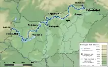 The Pilis Mountains lie in the big bend of the Danube, where it turns towards southern direction from the earlier western-eastern direction. The route of the Blue Trail is similar to a big, inverse "Ω" letter here; the Trail first goes in southern direction until the area of Budapest, only touching the forests of the capital (Mountains of Buda). Not much later the path returns to the Pilis Mountains and reaches the Danube at the Danube Bend at Visegrád, a popular tourist destination known for its castle atop the hill.