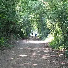 7 miles (11 km) in length, this section follows the Phoenix Trail along the route of a disused railway.[5] The surface is a mixture of tarmac and compacted grit.