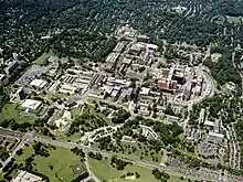 The campus is located between Old Georgetown Road to the west, Wisconsin Avenue to the east, West Cedar Lane to the North, and downtown Bethesda to the south. The Walter Reed National Military Medical Center is located directly across Wisconsin Ave. from the campus, and the Washington, D.C. border is less than three miles to the south. The Medical Center Washington Metro stop is located just beyond the campus fence along Wisconsin Ave.