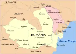 The territory of the National Legionary State amounted to roughly 195,000 square km (or just over 75,000 square miles). It had the same territory as modern day Romania, with the exception of Northern Transylvania, which had been ceded to Hungary in the aftermath of the Second Vienna Award.[8] It also possessed several islands in the Danube Delta, as well as Snake Island in the Black Sea. These have been part of Ukraine since 1948.[9]