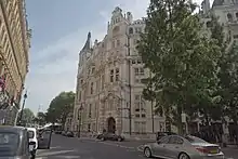 The club's Italianate building on the Embankment of the river Thames is the second-largest club-house built in London. (It was the largest ever at the time, but was superseded by the later Royal Automobile Club building completed in 1911.) Designed by Alfred Waterhouse, it was completed in 1887.[1] Its facilities include a dining room, a bar, function rooms, a billiards room, a smoking room, a library and an outdoor riverside terrace. It is located at Whitehall Place, close to the Houses of Parliament, the Thames Embankment and Trafalgar Square.