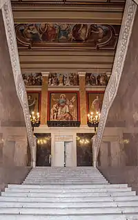 The ground floor's permanent exhibit is focused on Medieval and Early Modern stone inscriptions and carvings. This exhibit looks at various stone relics and the carvings that have been made into them. The majority of the items in this collection were discovered during the 1960s and 1970s, since they looked for more relics post World War II. The final permanent exhibit is placed in the basement of the museum. This is the Roman Lapidary exhibit, which is a collection of ancient Roman stone inscriptions and carvings.[3]