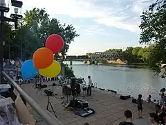 ![]() A band plays on the Mississippi River during National Night Out in downtown Minneapolis in August 2010 | |
