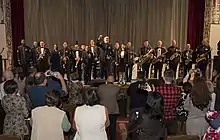 It was created in accordance with the resolution of the Chairman of the Verkhovna Rada on 29 November 1991.[1] The founder and artistic director was People's Artist of Ukraine Anatoliy Molotay.[2][3] In June 1992, the band was reorganized and renamed the Exemplary Band of the National Guard of Ukraine. In September 1995, the orchestra was commissioned to provide musical support to the presentation of the Council of Europe Information and Documentation Center in Ukraine. The same year, it conducted a concert tour of Germany. In December, 1997 it was renamed into the Presidential Band of the National Guard. On 14 April 2003, by the decree of President Kuchma, the band was granted the status of being a national unit and was this renamed into the National Presidential Band.[4][5]