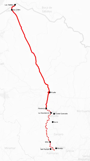 - ↑ Hernández, Carlos. "Lista nueva vía que ahorrará 1 hora para viajar de Ciudad Quesada a Florencia, ¿cuál es la ruta?". Retrieved 14 September 2019.