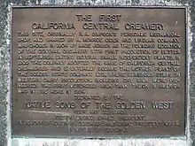 An NSGW marker at the site of the first California Central Creamery in Ferndale, California.