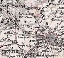 The Nauen Plateau (German: Nauener Platte) is a low plateau in the German states of Brandenburg and Berlin. It rises above the surrounding countryside by an average of 15 metres (49 ft) and is a largely contiguous upland area that was formed during the Saale and Weichselian glaciations. It consists predominantly of ground moraine deposits, partly overlain by gently rolling end moraine formations. Whilst the neighbouring regions of Zauche to the south, the Teltow to the southeast and the Barnim to the northeast have the same name as their geological formation, the cultural landscape on the Nauen Plateau bears the historical and regional name of Havelland. That said, the river country of the Havelland extends beyond the plateau to include the Havel valley and other lowland areas.