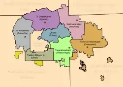 The Navajo Nation Police (formerly known as the Navajo Tribal Police) is the law enforcement agency on the Navajo Nation in the Southwestern United States. It is under the Navajo Division of Public Safety. It is headed by a Chief of Police, six Police Captains and eight Police Lieutenants. It includes: Internal Affairs, Patrol, K-9 Unit, Police diving, Tactical Operations Team, Traffic Unit, Fiscal management, Recruitment, and Training Divisions. The Navajo Nation Police are responsible for seven districts: Chinle, Crownpoint, Dilkon, Kayenta, Shiprock, Tuba City, and Window Rock. There are also several substations in each district ranging from one-man substations or up to five officers each. Currently, there are 210 sworn police officers (134 patrol), 28 criminal investigators, and 279 civilians acting as support staff for the department. There are approximately 1.9 police officers per 1,000 people and one officer is responsible for patrolling 70 square miles (180 km2) of reservation land. The Navajo Nation Police are funded by federal contracts and grants and general Navajo Nation funds. This police department is one of only two large Native American police Departments with more than 100 sworn officers in the United States (the other is the Oglala Lakota Nation's police department).[1]