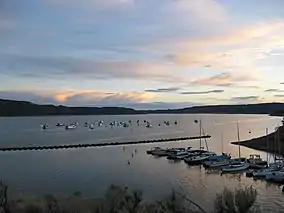 Navajo State Park is a state park of Colorado, USA, on the north shore of Navajo Lake. Touted as Colorado's answer to Lake Powell, this reservoir on the San Juan River begins in Colorado's San Juan Mountains and extends 20 miles (32 km) into New Mexico. Its area is 15,000 acres (6,100 ha), and it has 150 miles (240 km) of shoreline in two states. Park activities include boating, houseboating, fishing, camping, and wildlife viewing.[2] There is a New Mexico state park at the southern end of the lake.