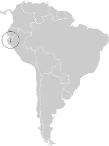 The neblina metaltail is found from the northern part of Podocarpus National Park in Ecuador's Loja Province south to northern Piura and Cajamarca departments in Peru. It inhabits the edges of elfin forest and páramo, moist landscapes characterized by shrubby growth and small trees. ("Neblina" is Spanish for fog or mist.) In elevation it ranges between 2,600 and 3,650 m (8,500 and 12,000 ft) and is most common between 2,900 and 3,400 m (9,500 and 11,200 ft).[6]