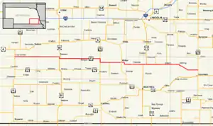 - 1 2 3 "Nebraska Highway Reference Log Book" (PDF). Nebraska Department of Roads. 2015. pp. 136–138. Retrieved January 7, 2017.