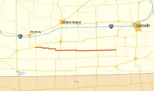 - 1 2 3 4 "Nebraska Highway Reference Log Book" (PDF). Nebraska Department of Roads. 2015. pp. 180–181. Retrieved January 7, 2017.