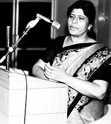 As a trade union activist in the 1970s she became involved in work on women's issues within the trade union movement and in Indian society as a whole. She organised women workers to raise issues of physical and mental violence, the dowry system, rape, prostitution and sexual harassment.[2]