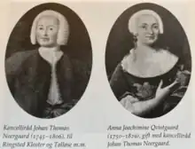 The de Neergaard family is a Danish noble family descended from War Councillor Peter Johansen Neergaard, whose two sons Jens Bruun de Neergaard (1742–1788) and Johan Thomas de Neergaard (1745–1806) were ennobled on 31 May 1780. Descendants of Jens Bruun de Neergaard are referred to as the 'elder branch', whereas descendants of Johan Thomas de Neergaard are referred to as the 'younger branch'.[1]