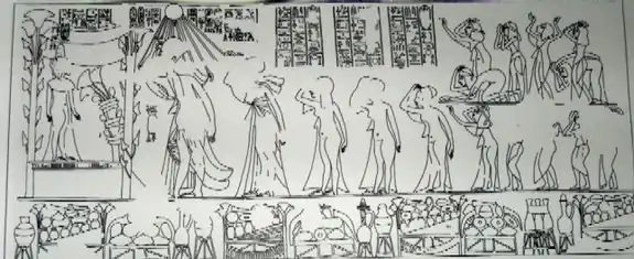 In the tomb of Huya, the chief Steward of Neferneferuaten's grandmother Queen Tiye, Neferneferuaten is shown in a family scene on a lintel on the north wall. The extended scene shows Akhenaten and Nefertiti on the left with their four eldest daughters, while on the right hand side Amenhotep III, Queen Tiye and princess Baketaten are shown.[4][5] In the reward scene in the tomb of Meryre II, Neferneferuaten Tasherit is shown with four of her sisters (only Setepenre in absent).[5]