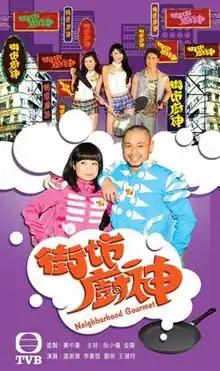 Neighborhood Gourmet (Chinese: 街坊廚神; Jyutping: Gaai1 Fong1 Ceoi4 San1; literally "Neighborhood Chef") is a Hong Kong variety food reality television series produced by TVB, hosted by Kitty Yuen and King Kong Lee. Each episode Yuen and Lee tour a different neighborhood in or around Hong Kong to scope out the most unusual and best food offerings in that neighborhood. During midway through each episode two new artistes (male and female) will tag along with the shows two main host to sample food during the viewer recommendation segment of the show. These two new artistes will also assist the host during the end cooking competition segment.[1][2] Series 1 began broadcast on May 3, 2011, TVB Jade weekdays during its 10:30 to 11:00 pm time slot with a total of 29 episodes. Series 2 began broadcast on November 18, 2012, TVB Jade Sundays during its 8:00 to 9:00 pm timeslot with a total of 18 episodes. Series 3 began broadcast on April 26, 2015, on TVB Jade Sundays suring it 7:35 to 8:30 timeslot with an expected 18 episodes total. This series will be filmed abroad focusing on each countries specialty cuisine instead of neighborhoods, but the shows format will remain the same.[3]