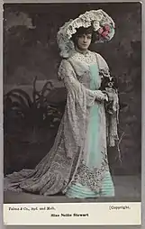 When the Duke and Duchess of York came to Australia to open the first federal parliament, Stewart sang the ode "Australia" at the beginning of the musical programme.[11] In February 1902 she had one of the greatest parts in her career, Nell Gwynne in Sweet Nell of Old Drury.[9] She became known as "Our Nell" and "Sweet Nell".[12] Other comedy parts followed in Mice and Men and Zaza. It was in the last play that Stewart reached her largest salary, £80 a week.