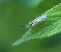 Nematus is a genus of sawfly in the family Tenthredinidae. Some of its species, including Nematus leucotrochus, Nematus olfaciens and Nematus ribesii, eat the leaves of fruit bushes and trees, and can be serious pests.[1]