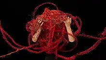 The works in her Breathing Wall for Vesalius (1985–86) series portray an abstract and tactile take on feminist portrayals of the body.[5] These wall-based sculptures contrast stiff wires and softer vessel-like structures, exposing the “...dichotomy between the opposite components of her own body: the stiff and hard support structure of her back (spine) one the one hand, and the relatively soft and flexible muscles [on the other].”[6] These abstract sculptures alluded to and were directly informed by bodily processes and the human form. Close observation of these works reveal textures by turns soft and ragged, an effect of eroding the surface and “literally scarring or wounding the form.”[1]