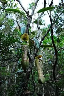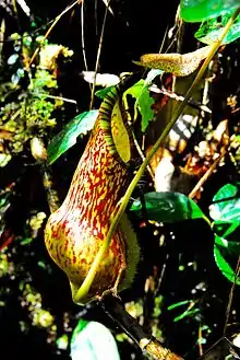 Nepenthes justinae is a tropical pitcher plant known only from Mount Hamiguitan on the Philippine island of Mindanao, where it grows at elevations of 1000–1620 m above sea level.[1]