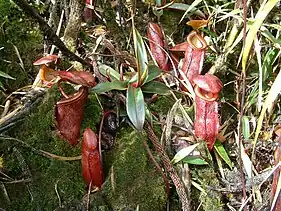 Nepenthes lamii /nɪˈpɛnθz ˈlæmi/ is a tropical pitcher plant endemic to New Guinea, where it grows at an altitude of up to 3520 m above sea level, higher than any other Nepenthes species.[2][5] Although once confused with N. vieillardii[5][6] and previously regarded as conspecific with the closely related N. monticola, it is now recognised as a distinct species.[7]