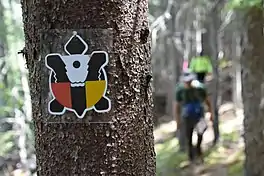 ![]() The distinctive turtle markers of the Sentier Nepisiguit Mi'gmaq Trail. | |