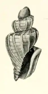 (Original description) The very minute, yellowish shell contains 3½ whorls, including a 1½ whorled protoconch, which is large, rounded, and spirally lirate. The two adult whorls are strongly angled at the periphery, from whence to the suture they are flat or concave. The sculpture consists of sharp, narrow, axial ribs, about twelve on the body whorl, which extend from suture to suture, and pass into the aperture. They are widely separated, the interspaces being crossed by a few very faint spiral lirae. The aperture is rather expanded. The siphonal canal is very short. The columella is excavate. The outer lip is strongly varixed. The sinus at the suture is deep and open and bordered by a varix.