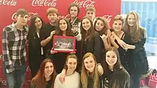 The cast of the stage production A Midsummer Night's Dream at the 12th Buero Vallejo Awards Ceremony (February 2015). The director David Valdelvira, the assistant director Estela Celdrán and the cast of the play (among them, Carmen Climent, Nerea Elizalde and Julen Guerrero).