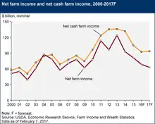 In United States agricultural policy, net farm income refers to the return (both monetary and non-monetary) to farm operators for their labor, management and capital, after all production expenses have been paid (that is, gross farm income minus production expenses). It includes net income from farm production as well as net income attributed to the rental value of farm dwellings, the value of commodities consumed on the farm, depreciation, and inventory changes.
