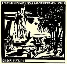 The catalogue of the first N.K.V.M. exhibition lists 128 items by 16 artists: Paul Baum, Vladimir Georgievich Bekhteev, Erma Bossi, Dresler, Eckert, Erbslöh, Pierre Girieud, Karl Hofer, Jawlensky, Kandinsky, Kanoldt, Kogan, Alfreds Kubin, Münter, Pohle, Werefkin, and is accompanied by 14 reproductions and a list of prices.[4]