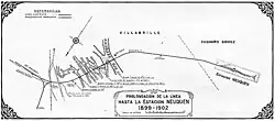 In 1896, due to territorial disputes with Chile, the Argentinian Government commissioned the British-owned company Buenos Aires Great Southern Railway (Spanish: Ferrocarril Sud) to expand the existing railroad tracks from the city of Bahía Blanca, in the Buenos Aires Province, to the Neuquén National Territory. The expansion of the railroad was aimed at facilitating the quick transport of troops and supplies to the Chilean border in case of war.[1] A previous contract proposal by the Southern Railway was rejected in 1895 by the Argentinian Charmber of Deputies, as the company desired to lay tracks until General Roca, Río Negro or the confluence of the Limay and Neuquén rivers to avoid building a bridge on the site of the current city of Neuquén. The Chamber of Deputies felt that the construction of a railway bridge was necessary to guarantee the movement of Argentinian troops to the rest of the region in case the river flooded.[2] By that time, the capital of the Neuquén National Territory was located in the city of Chos Malal. The journey between the city of Buenos Aires and the capital of the Territory lasted fifteen days, while the mail service arrived once a month.[3]