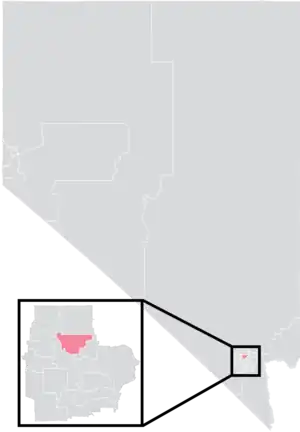 The district overlaps with Nevada's 1st and 4th congressional districts, and with the 6th and 7th districts of the Nevada Assembly.[4] The district has a total surface area of 25 square miles (65 km2) and a perimeter of 26.6 miles (42.8 km).[5]