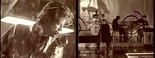 Two still images from the video for "Never Let Me Down"