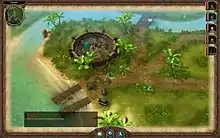 The player character can engage in other activities outside of combat, such as completing quests and interacting with non-player characters. While in conversation with other characters, the player character can influence them by using several skills, such as "Intimidate" or "Diplomacy".[7] The entire party can assist in this process if they have the appropriate skills. Characters can create weapons, armor, and other goods with raw materials through a system of skill-based crafting.[8] Storm of Zehir also includes a regional economy whereby players can establish trading outposts in various towns and create caravan routes between them, providing merchandise to consumers along each route. The caravans can be personally observed and managed by the player, such as providing security if attacked by bandits.[9]