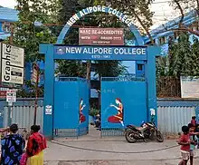 New Alipore College, established in 1963,[1] is an undergraduate college in Kolkata, West Bengal, India. It is affiliated with the University of Calcutta.[2] The college campus is free from posters and plastic. The college is the seat of higher studies in the region. The college has been visited by a range of people from historians to poets, and journalists to educationists, like John Thieme (UK), Sekhar Bandyopadhyay (NZ), Ranabir Chakravorty (JNU), Alessandro Vescovi, Università degli Studi di Milano - State University of Milan (Italy), Subodh Sarkar, Binayak Bandyopadhya, Sanjukta Dasgupta, Anjum Katyal, Sharmila Ray, Snehasis Sur, Gopali Banerjee, Gopal Chandra Mishra (VC, Gourbonga University), Prof. Malashri Lal, Prof. Bashabi Fraser, noted poet Keki N Daruwalla, Nalini Bera, Ashwini Kumar, Basudhara Roy, Bill Ashcroft( online), Paul Sharrad( Australia), Ashok Sengupta (Kalyani Univ), Dr Siddhartha Biswas and Dalit activist and author Manohar Mouli Biswas. The college has MoUs with many academic institutions. It has created an ecosystem for continuous research and innovation. The college has a dedicated research laboratory; very rare in a college. Cultural competence building among the stakeholders is one of the importation features of the college.