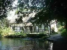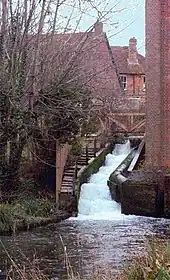 About 220 yards (200 m) west along the river path, on the border between Old and New Alresford, is a Grade II listed 17th Century half-timbered house and mill with mill race underneath.[25] It benefited from the construction of the Great Weir. Dating from the period when the wool trade was the dominant local industry, it ceased operating early in the 19th century and has been used as a domestic dwelling ever since. In 1950 it was acquired by Mr and Mrs G B Gush, who carried out a series of improvements to the property.[26]