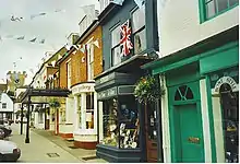 Much of the medieval town was destroyed by a fire in 1689/90 that destroyed 117 houses in the town as well as the church and Market House, another in 1710 and a 'like calamity' in 1736.[8] Much of the town was rebuilt in the 18th century, with many of the Georgian buildings that remain today.[9]
