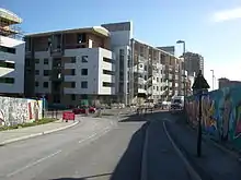 These blocks are being developed by Crest Nicholson BioRegional Quintain LLP as an environmentally friendly set of "eco-apartments" called One Brighton.[3] Construction started in autumn 2007. It consists of 172 apartments (369 beds in total), commercial space and a community facility.[27][28] The scheme has been conceived to enable people living and working there to lead sustainable lifestyles. Of these blocks' housing stock, 30% has been classified by the developers as affordable housing, which will be managed by an independent housing association.[17]