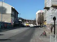 Northward view along the section of New England Street that has been retained as part of the north–south through route