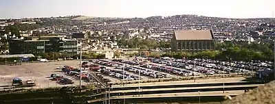 Various proposals were put forward for more effective use of the land. The first was in 1989, when a mixed-use development, centred on a new pedestrianised square outside St Bartholomew's Church, was planned. It would have included a supermarket, offices, houses and other shops, and a relief road designed to take traffic away from the congested London Road.[5] The Environmental Services Department of what was then Brighton Borough Council produced a planning brief for the site in October 1993, stating a desire to "recreate in the area west of London Road a vital, urban, mixed use townscape which links a regenerated and environmentally enhanced London Road shopping centre with North Laine and the station".[9] The desire to use the site to its full potential was increased when city status was awarded to Brighton and Hove in 2000; it was the largest brownfield site in the city.[10]