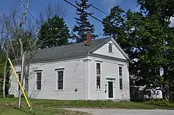The hall was built in 1817 as a cooperative venture between the town and the local academy, which had been founded in 1787. It was built with two full stories, and a tower with belfry, much in the manner of typical New England churches of the period. The academy eventually moved to another building, and the town made significant alterations in the 1869, enlarging its footprint, removing the tower's cupola, and removing the second floor to provide a single, high-ceilinged auditorium. The exterior also received a number of Greek Revival features at this time, and has seen little alteration since then.[2] The building is still owned by the town, and is used occasionally for civic functions.
