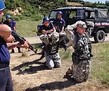 The New Jersey–Albania National Guard Partnership is one of 25 European partnerships that make up the U.S. European Command State Partnership Program and one of 88 worldwide partnerships that make-up the National Guard State Partnership Program.[2] The partnership was established in 1993. The current M2M focus places emphasis on OCO support, NCO Development, Military Medical pre/post deployment medical care, Military Police mentoring, military support to civil authority and disaster response.[3]