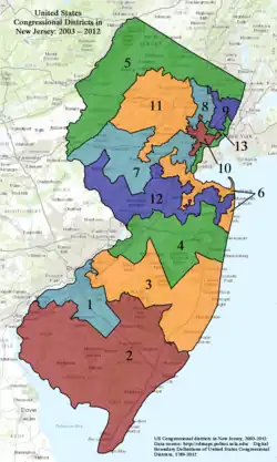On December 23, 2011, the New Jersey Congressional Redistricting Committee consolidated New Jersey's then 13 House seats into 12 congressional districts due to the results of the 2010 US Census.[3][4]
