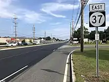 The road from Toms River to Seaside Heights was part of the Jersey Coast Way, which stretched from Cape May to the Staten Island Ferry.[5] Prior to 1927, the route between present-day Route 70 in Lakehurst and present-day CR 527 in Toms River was a part of Pre-1927 Route 18, which was legislated in 1923 to run from Camden to Toms River.[6] In the 1927 New Jersey state highway renumbering, Route 37 was legislated to run from Route 27 and Route 30 (now US 1 Business, US 206, and Route 31) in Trenton to Route 35 (now Route 88) in Point Pleasant, passing through White Horse, Allentown, Lakehurst, Toms River, and Seaside Heights.[7][8] The portion between Trenton and White Horse replaced part of Pre-1927 Route 2, while the portion between Lakehurst and Toms River replaced part of Pre-1927 Route 18.[6][9]