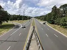 Following the 1927 renumbering, Route 37 existed in multiple separate sections: one running from the Trenton–Hamilton Township line to the White Horse Circle (concurrent with US 206), the crossing of Gropp Lake in Hamilton Township (currently a state-maintained section of CR 524), a 1⁄2-mile (0.80 km) segment between Hamilton Township and Upper Freehold Township west of Allentown (also current CR 524), a section of current CR 539 between Burlington Path Road in Upper Freehold and Hornerstown Road in Plumsted Township, and one running from Route 40 (now Route 70) in Lakehurst to Point Pleasant.[10][11][12] The remainder of the route between White Horse and Lakehurst remained incomplete.[13] In the 1953 New Jersey state highway renumbering, Route 37 was legislated to run along its current alignment from Route 70 in Lakehurst to Route 35 in Seaside Heights. The number was dropped between Trenton and White Horse in favor of US 206, while the section between Seaside Heights and Point Pleasant became a realignment of Route 35.[14]