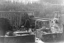 The town and the industrial activity had been in decline before then, but after the mills closed migration away from the village accelerated, and the buildings began to deteriorate.[4] The top two floors of Mill Number 1 were removed in 1945 but the building has since been restored and is now the New Lanark Mill Hotel. In 1963 the New Lanark Association (NLA) was formed as a housing association and commenced the restoration of Caithness Row and Nursery Buildings. In 1970 the mills, other industrial buildings and the houses used by Dale and Owen were sold to Metal Extractions Limited, a scrap metal company. In 1974 the NLCT (now the NLT) was founded to prevent demolition of the village. A compulsory purchase order was used in 1983 to recover the mills and other buildings from Metal Extractions after a repairs notice had been served in 1979. This was because of the state of repair of the buildings despite their listing as historic buildings that required their legal preservation in 1971.[7] They are now controlled by the NLT, either directly through the Trust or through wholly owned companies (New Lanark Trading Ltd, New Lanark Hotel Ltd and New Lanark Homes).[8] By 2005 most of the buildings had been restored and the village has become a major tourist attraction.
