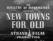 "New Towns for Old" is a 1942 British promotional short film promoting the clearance of old historic "slum towns" and replacement with "new towns".[1] It promotes the then new concept of town planning. It was directed by John Eldridge and scripted by the poet Dylan Thomas.[2] The film was produced by the Ministry of Information and was one of the few wartime documentary to focus on a topic unrelated to the war.[3]