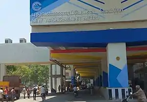 New Washermanpet (formerly known as Tondiarpet Metro Station)[1] is an elevated metro station on the North-South Corridor of the Line 1 Extension of the Blue Line of Chennai Metro in Chennai, India. This station will serve the neighbourhoods of New Washermanpet and other northern suburbs of Chennai.